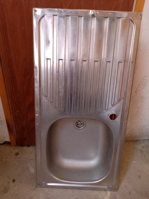Rabljeni Ugradbeni inox sudoper s jednom kadom i rupom za slavinu. U slikama mala oštećenja...