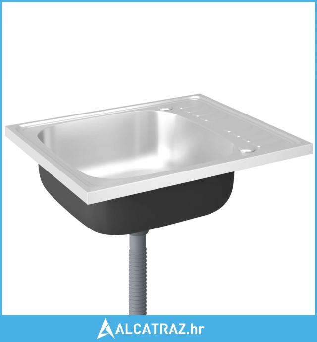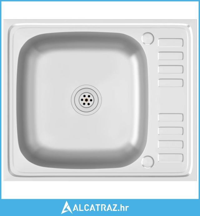 Kuhinjski sudoper s cjedilom srebrni 600 x 500 x 155 mm čelični - NOVO