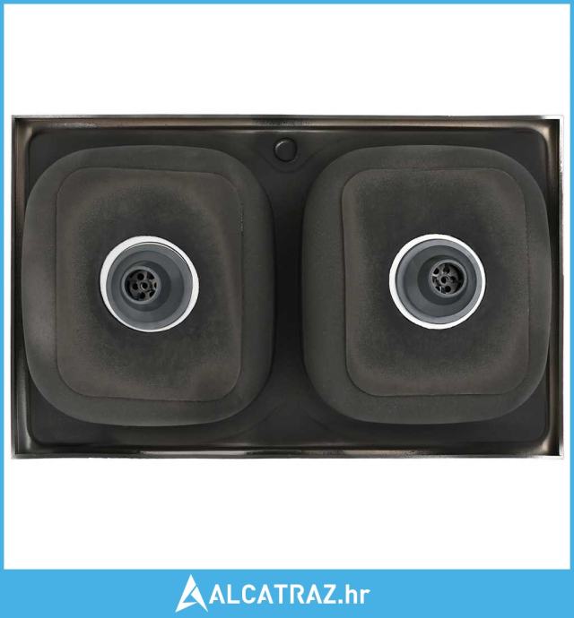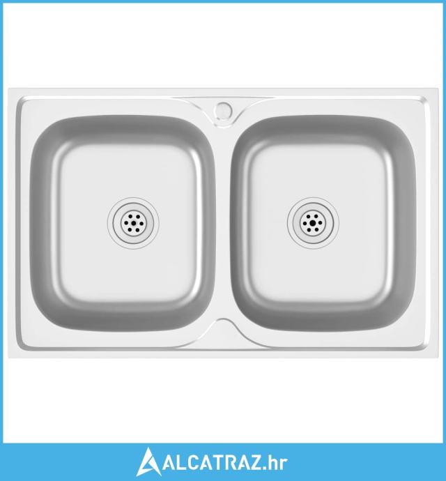 Kuhinjski sudoper s dva korita srebrni 800x500x155 mm čelični - NOVO