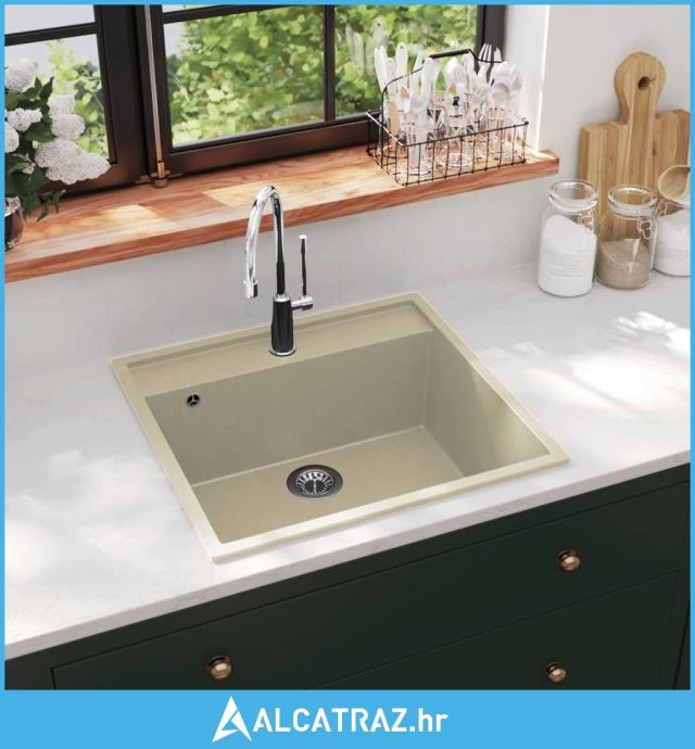 Kuhinjski sudoper s otvorom protiv prelijevanja bež granitni - NOVO