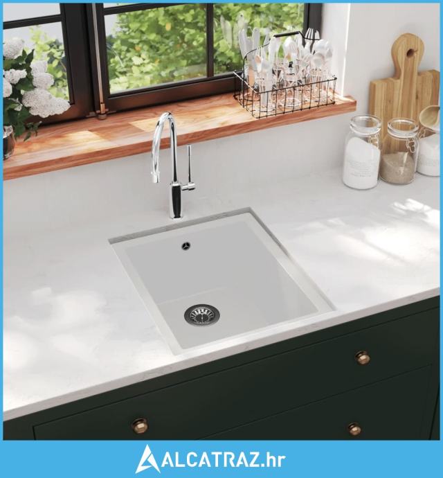 Kuhinjski sudoper s otvorom protiv prelijevanja bijeli granitni - NOVO