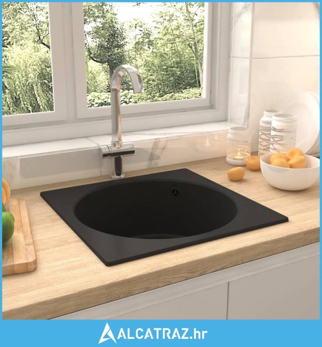 Kuhinjski sudoper s otvorom protiv prelijevanja crni granitni - NOVO