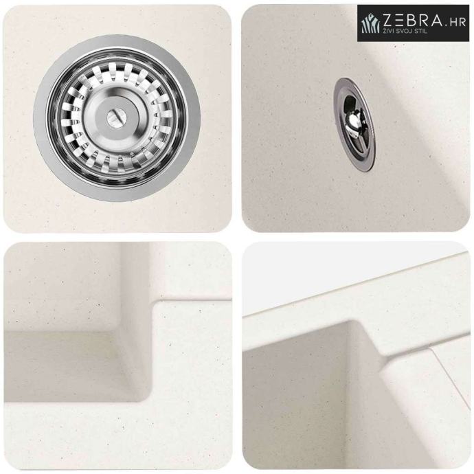 Materijali: Sudopera je izrađena od 80% kvarca i 20% smole, što joj daje dodatnu čvrstoću i otpornost. Ova kombinacija osigurava izvanrednu otpornost na čipove i ogrebotine, zadržavajući savršeni izgled čak i pri intenzivnoj upotrebi.