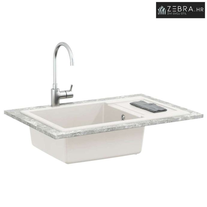 Ova moderna kuhinjska sudopera savršeno spaja estetiku i funkcionalnost. Sa svojim pravokutnim oblikom, idealna je za moderne kuhinje i donosi elegantan izgled u svaki prostor. Napravljena od izdržljivih materijala, 80% kvarca i 20% smole, ne samo da dodaje dozu stila nego i osigurava dugovječnost za svakodnevnu upotrebu. Prikladna je za užurbane kuhinje, s čistim linijama i sofisticiranim stilom koji je čine savršenom za entuzijaste kuhanja i obitelji.