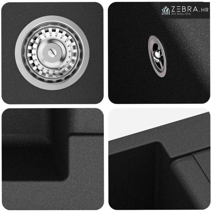 Ova moderna kuhinjska sudopera savršeno spaja estetiku i funkcionalnost. Sa svojim pravokutnim oblikom, idealna je za moderne kuhinje i donosi elegantan izgled u svaki prostor. Napravljena od izdržljivih materijala, 80% kvarca i 20% smole, ne samo da dodaje dozu stila nego i osigurava dugovječnost za svakodnevnu upotrebu. Prikladna je za užurbane kuhinje, s čistim linijama i sofisticiranim stilom koji je čine savršenom za entuzijaste kuhanja i obitelji.