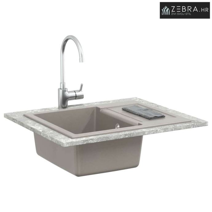 Ova moderna kuhinjska sudopera savršeno spaja estetiku i funkcionalnost. Sa svojim pravokutnim oblikom, idealna je za moderne kuhinje i donosi elegantan izgled u svaki prostor. Napravljena od izdržljivih materijala, 80% kvarca i 20% smole, ne samo da dodaje dozu stila nego i osigurava dugovječnost za svakodnevnu upotrebu. Prikladna je za užurbane kuhinje, s čistim linijama i sofisticiranim stilom koji je čine savršenom za entuzijaste kuhanja i obitelji.
