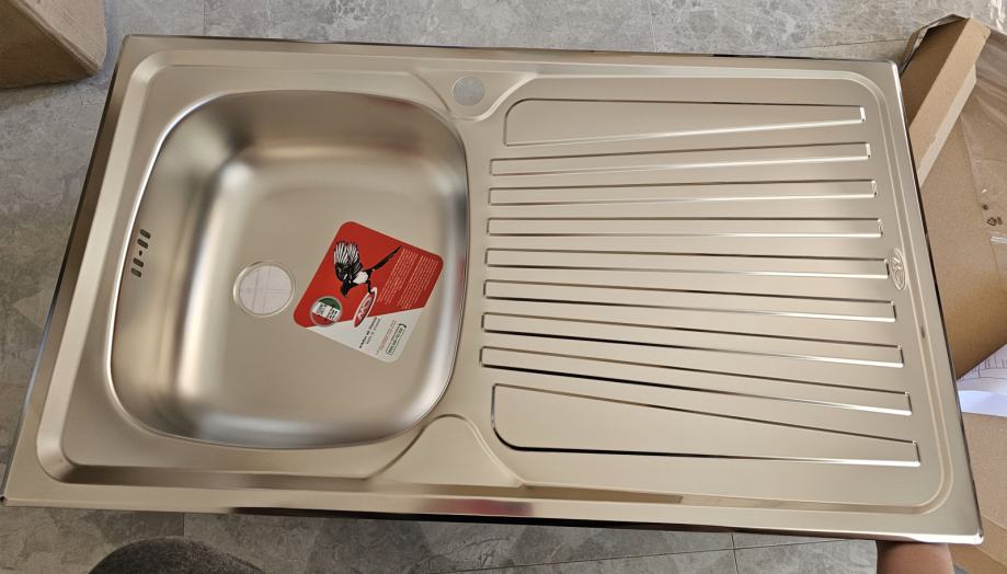 Na prodaju novi, original zapakiran inox sudoper, dimenzija 86x50. Uz sudoper ide sav potreban pribor za montažu.