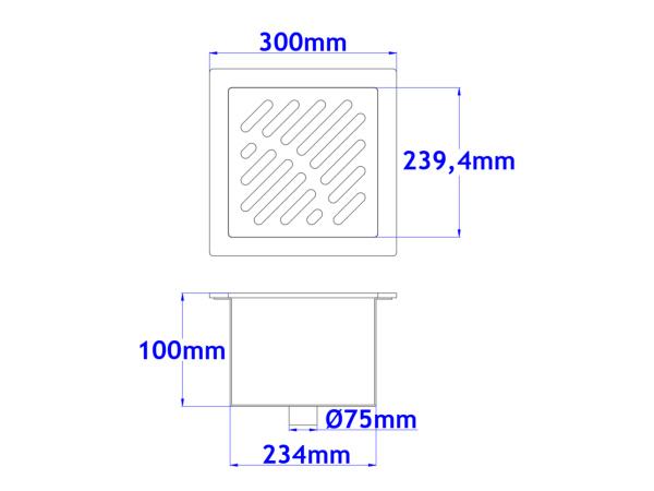 Podni sifon komplet s PERFORIRANIM UZORKOM 300x300x100mm INOKS Ø75mm