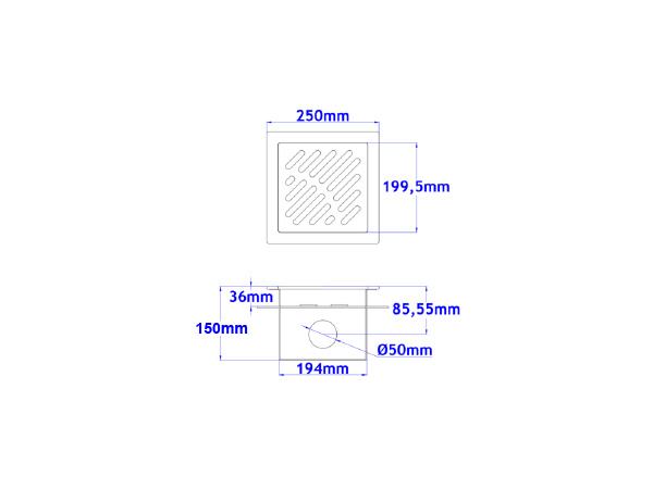 Podni sifon komplet s prirubnicom za hidroizolaciju 250x250x152 Ø50mm