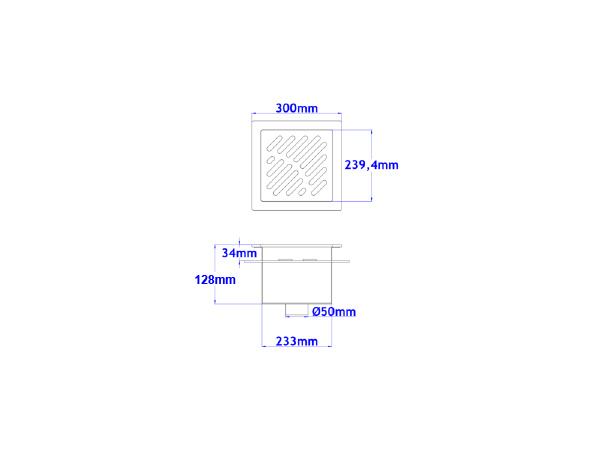 Podni sifon komplet s s prirubnicom za hidroizolaciju 300x300x127mm