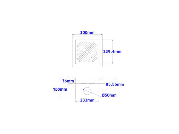 Podni sifon komplet s s prirubnicom za hidroizolaciju 300x300x152mm
