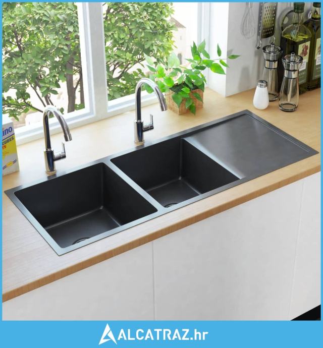Ručno rađeni kuhinjski sudoper od nehrđajućeg čelika crni - NOVO