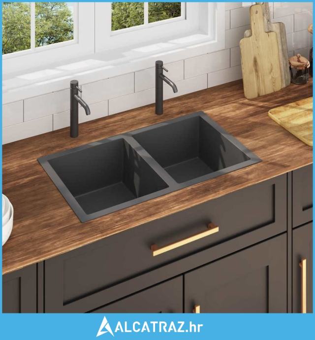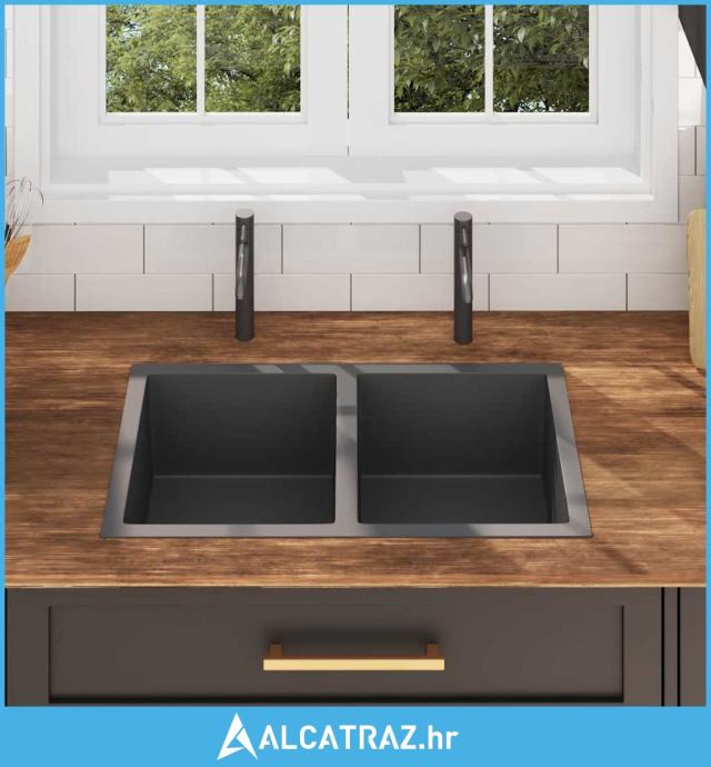 Ručno rađeni kuhinjski sudoper od nehrđajućeg čelika crni - NOVO