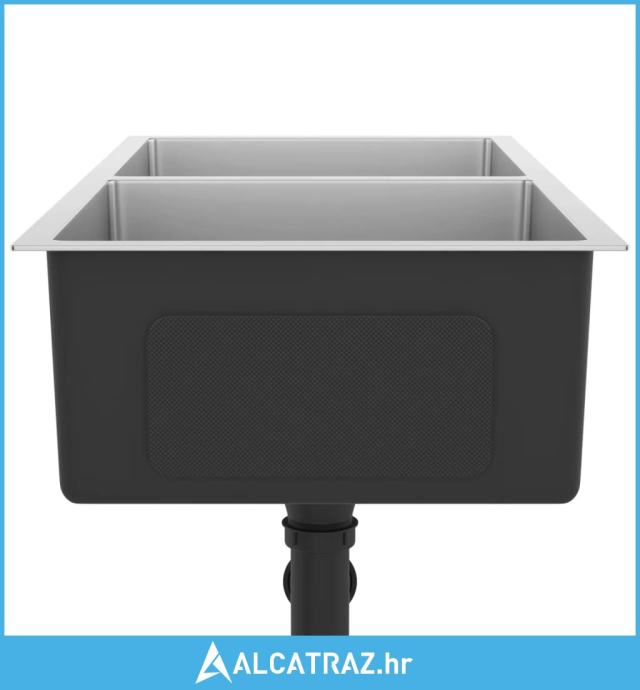 Uživajte u prednosti ovog kuhinjskog sudopera s čistim suvremenim dizajnom. Dvije kadice sa svileno glatkom satenskom završnom obradom odisat će stilom i profinjenošću te će se uklopiti u bilo koje kuhinjsko uređenje!