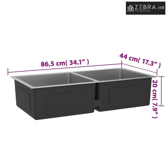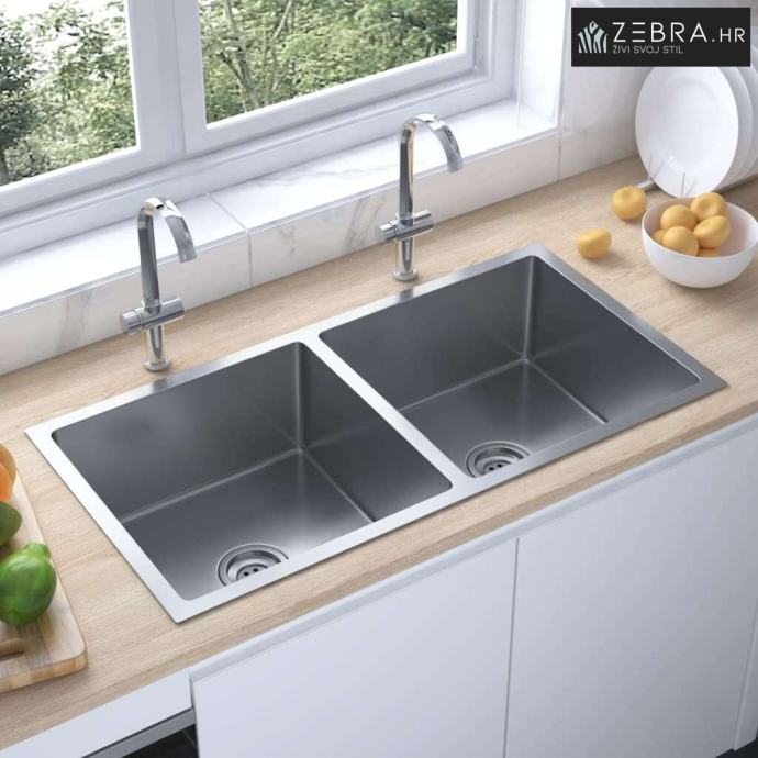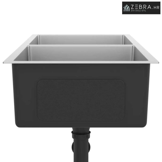 Uživajte u prednosti ovog kuhinjskog sudopera s čistim suvremenim dizajnom. Dvije kadice sa svileno glatkom satenskom završnom obradom odisat će stilom i profinjenošću te će se uklopiti u bilo koje kuhinjsko uređenje!