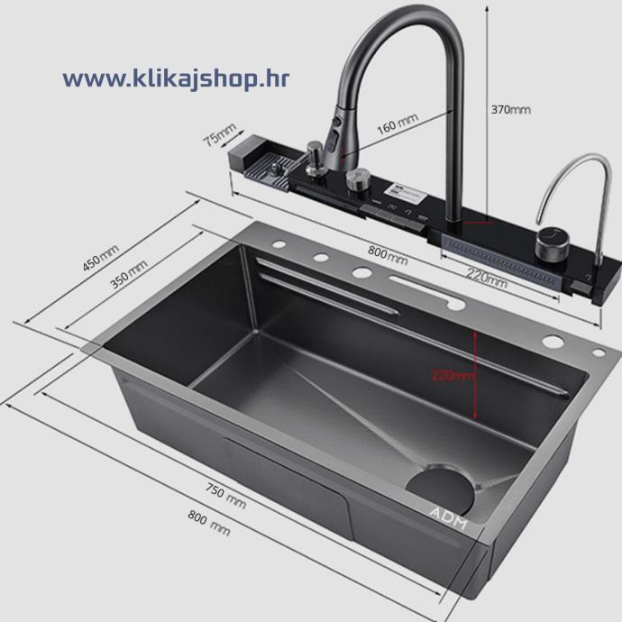 Veličina sudopera: 800 mm × 450 mm × 220 mm