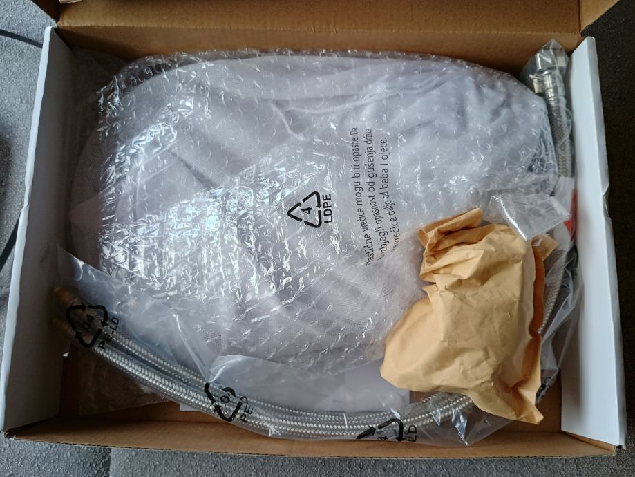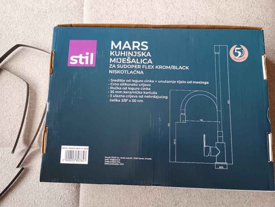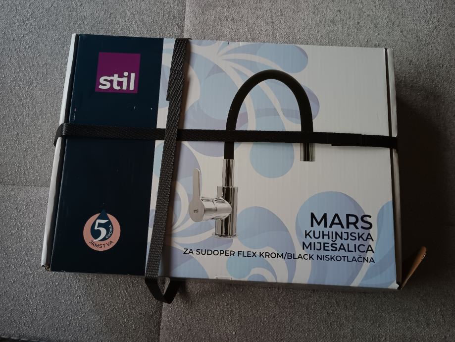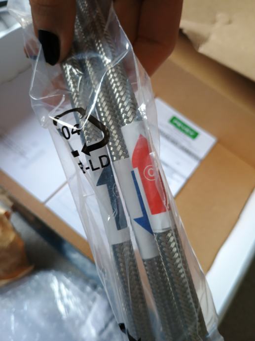 stil kuhinjska mješalica za sudoper flex krom/crna niskotlačna. Središte od legure cinka, unutarnje tijelo od mesinga. Crno silikonsko crijevo. Ručka od legure cinka. 35mm keramička kartuša. 3 ulazna crijeva of nehrđajućeg čelika 3/8" x 50 cm. Jedno crijevo se spaja na odvod za hladnu vodu, a dva crijeva na bojler za vodu. Kupljeno u Pevexu. Nikada korišteno. Novo n originalnoj kutiji. Garancija 5 godina. Prodajem u pola originalne cijene.