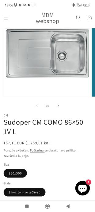 Originalno CM talijansko ugradbeno inox korito sudopera sa pripadajućim sifonom..