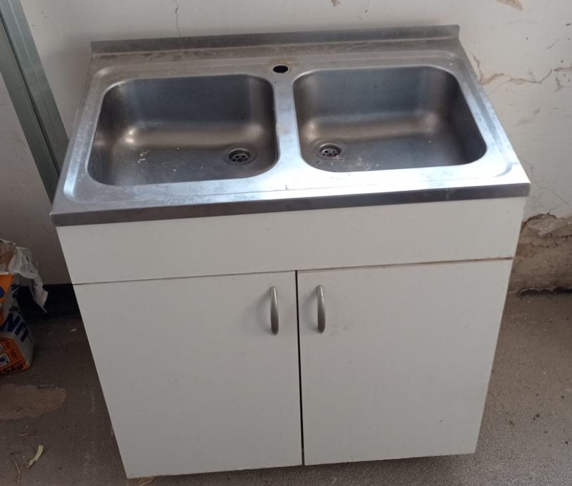 Prodajem sudoper na kuhinjskom elementu širine 80cm. Sudoper ima rupu za pipu, od inox lima je, nije oštećen ili sl dakle, ako se montira na novi element, super je.