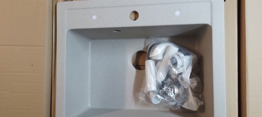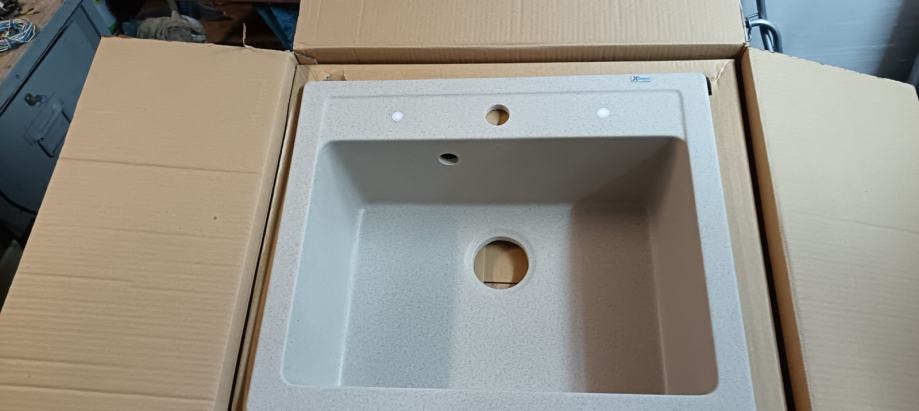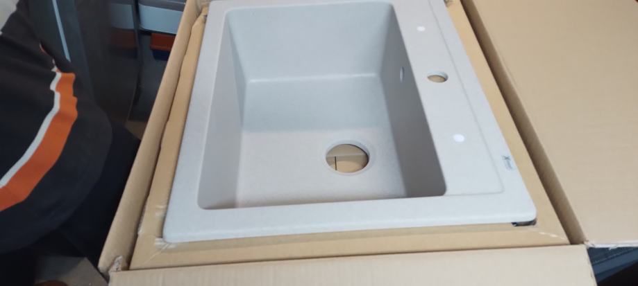 Prodajem nov, neraspakiran sudoper Granit Quadro bež boje F90 sa sifonom. Dimenzije 60x50 cm, dim.bazena 52x35cm dubina 19cm.