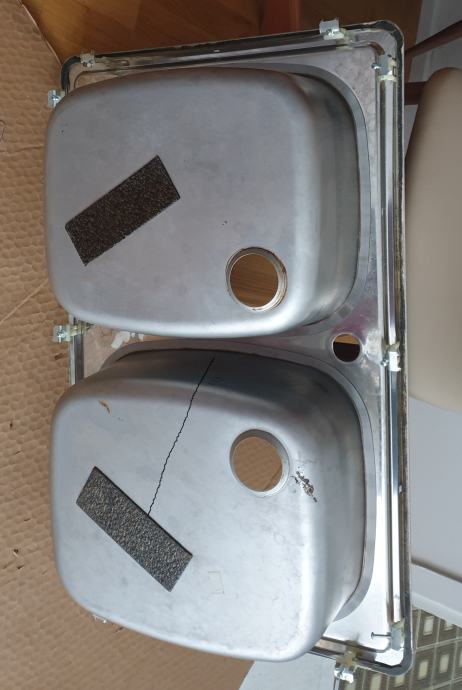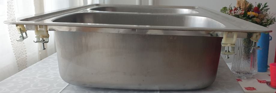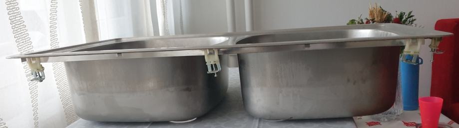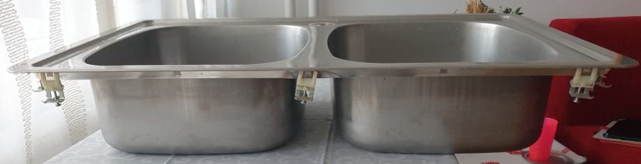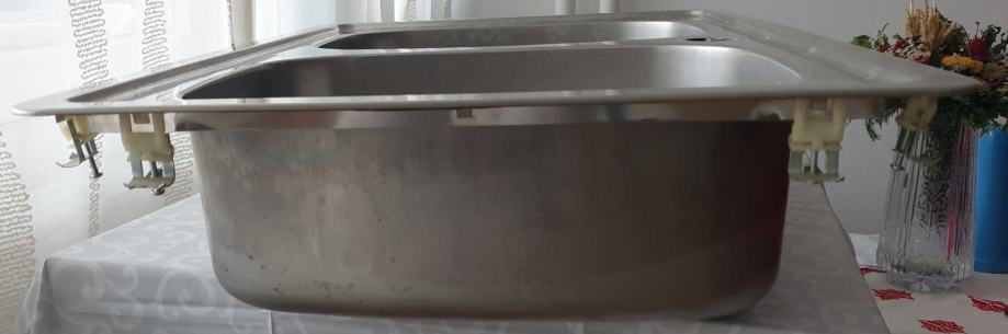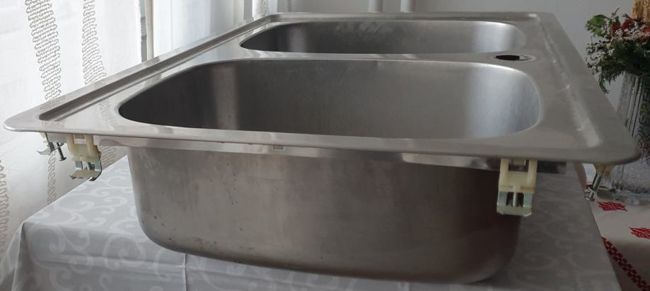 Na prodaju je rabljeni ugradbeni sudoper od nehrđajućeg čelika sa dva korita.