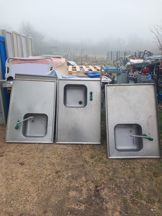 Jednodijelni sudoper ugostiteljski,dužine 110cm,širine 75cm,dubina 21cm,ima topla,hladna voda 4 komada,treba stavit druge cijevi,komad 80 eura
