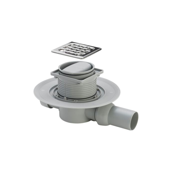Sistemska veličina 100, sa sigurnosnim zaporom mirisa Nasadnik 100x100 mm okretno i visinski prilagodljiv, čep, rešetka od plemenitog čelika 1.4301, brtvena prirubnica, sifon se može izvaditi, dotok DN40, odvodna cijev s kugličnim zglobom Tehnički podaci: - visina zaporne vode 30 mm - klasa građevinskog materijala K=300 kg - učinak odvoda kod visine uspora 10 mm 0,33 l/s - učinak odvoda kod visine uspora 20 mm 0,4 l/s Učinak odvoda može se postići samo sa nasadnikom sadržanim u opsegu isporuke! učinak odvoda prema DIN EN 1253 Model 4936.2