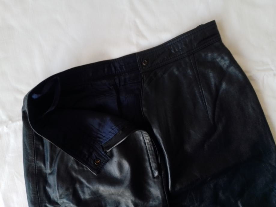 2+1 gratis! Američka mini suknja od prave kože, tamnoplava, vel. S(38)