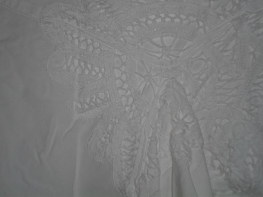 I u gornjem dijelu na platnu izvezen čipkani cvijet