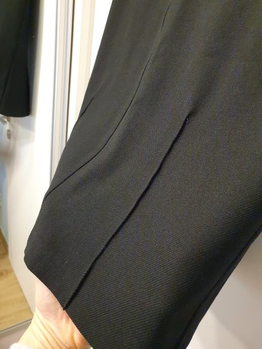 Ima 2 proreza i visku elastičnu pasicu koja se može nositi ili tako gore što je idealno za trudnice jer lijepo pokrije cijeli trbuh ili se može spustiti.