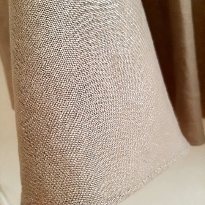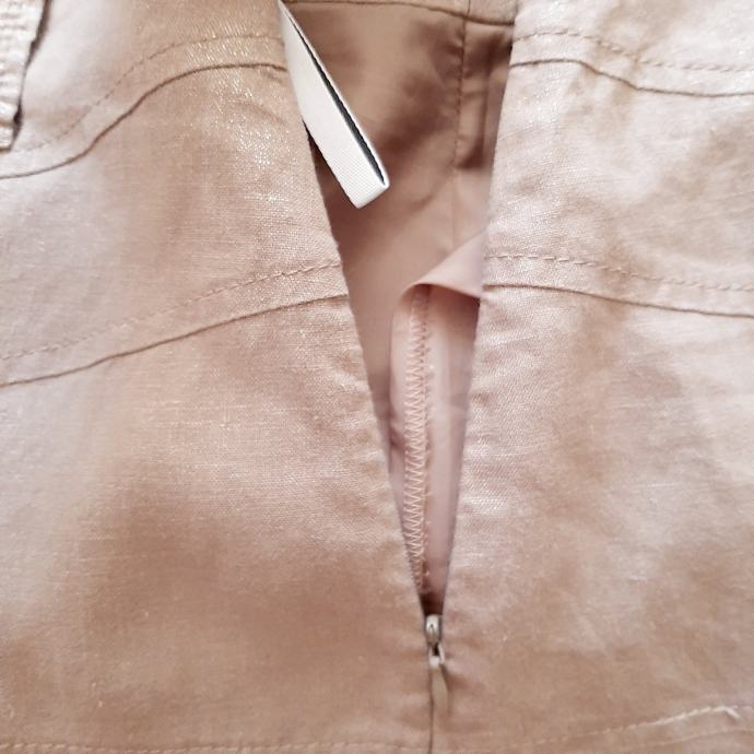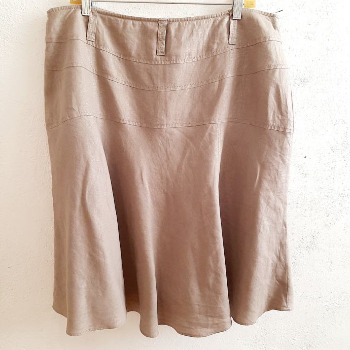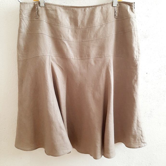 Bež suknja od lana Taifun 44 jako skupo plaćena jer je to poznati sestrinski brand Gerry Webera, podstavljena, materijal ima u sebi srebrni odsjaj, zbog sastava i finoće izrade te vrsnog kroja milina za nositi u sparnim danima