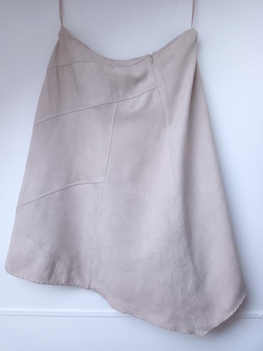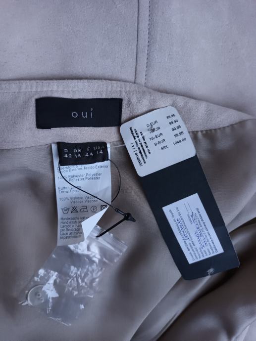 Bež suknja oui novo 42 sa etiketama nabavna cijena 99.95 € podstavljena kopčanje na zip i sa gumbom iznutra izvana mekani materijal poput brušene kože odlična prilika jer je odlične kvalitete širina u struku 41cm najkraći dio 65cm najdulji dio 73cm
