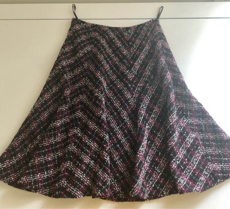 Nova suknja dužine 55 cm, od bokova se širi u glokn. Za struk cca 66 cm.