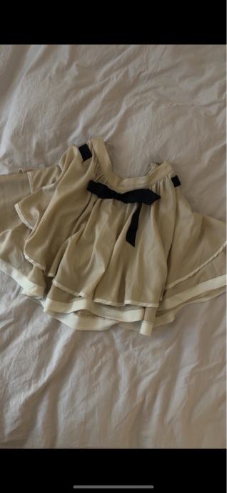 Elegantna coquette suknjica bež boje u veličini 36, malo nošena i savršena za ljetne kombinacije. Suknja je iznad koljena s dekorativnom crnom trakom koja daje poseban šarm. Slojeviti dizajn daje joj romantičan i ženstveni izgled koji odgovara trenutnom coquette stilu.