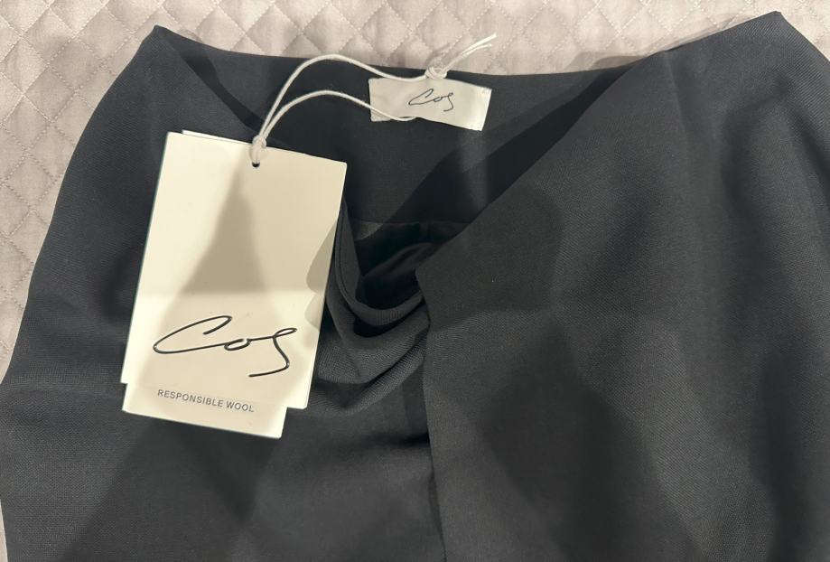 Prodajem COS asimetričnu crnu suknju u veličini 34. Suknja je potpuno nova, s etiketama, prodajem ju jer mi ne odgovara veličina.
