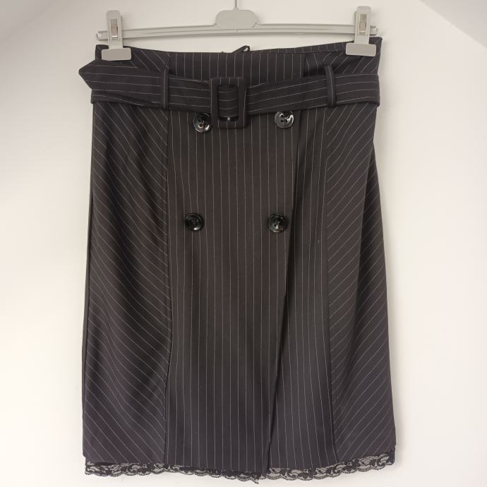 Crna poslovna suknja 36 38 novo na tanke bijele crte, jako ugodan materijal, konstruktivna, čvrsta, kompaktna,