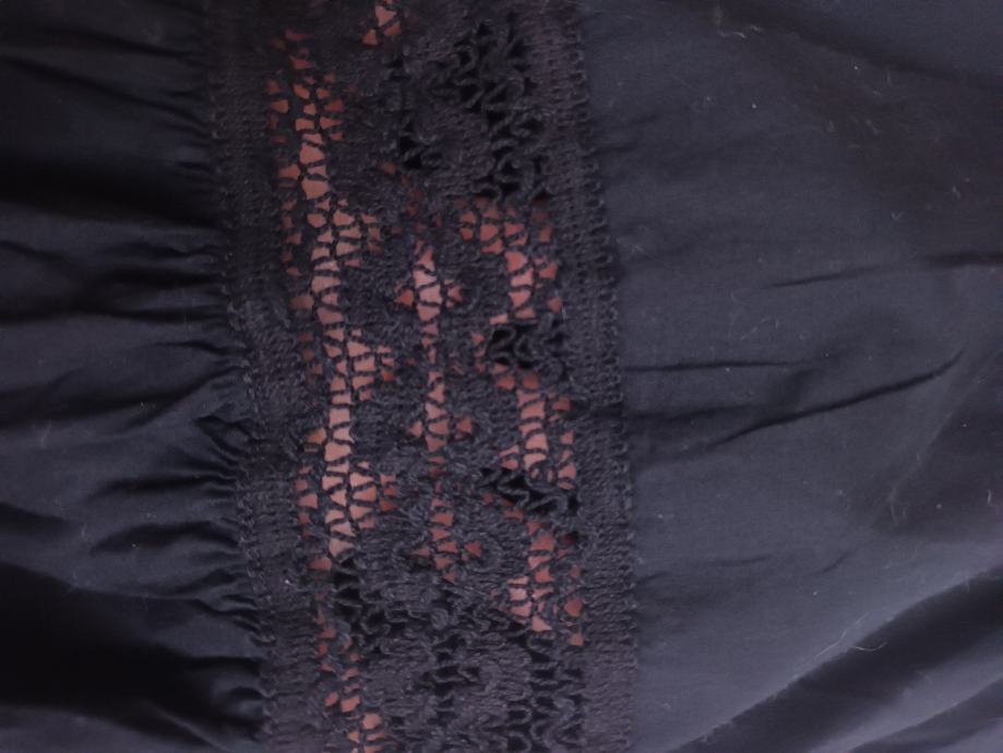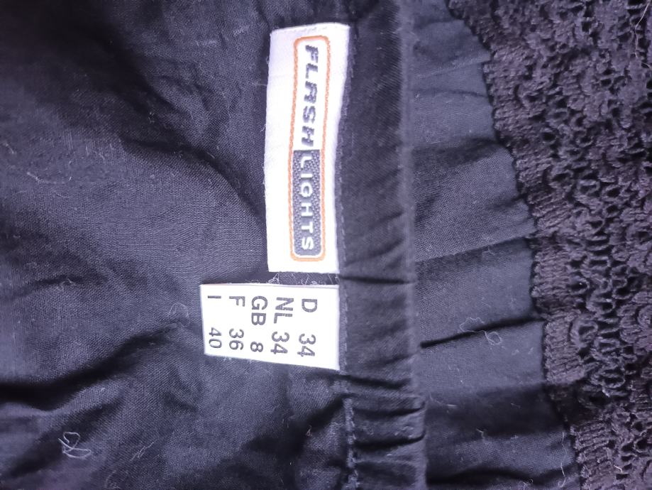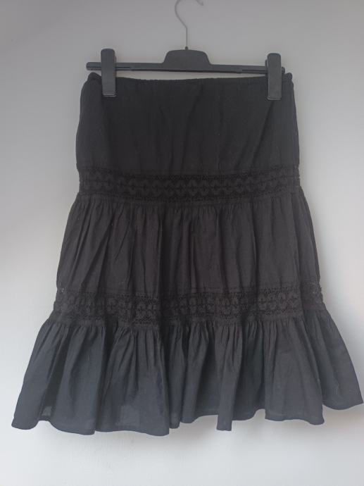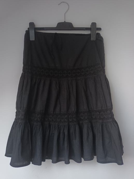 Crna suknja volani 34 široki kroj pamuk sa izvezenim detaljem između, do koljena, gumica u struku I vezanje vezicama