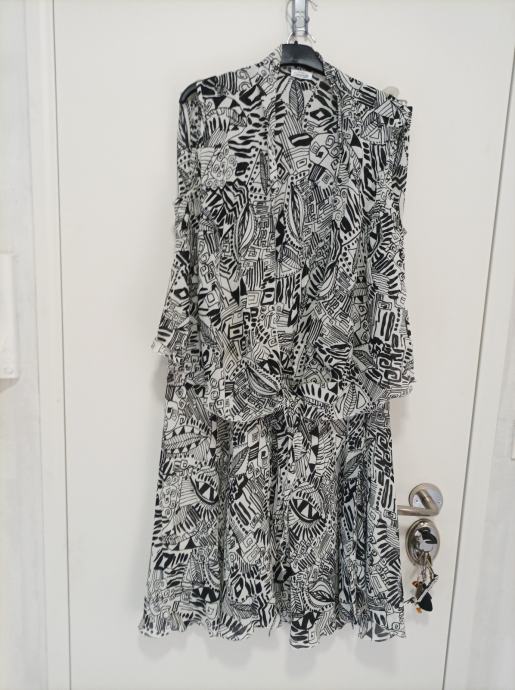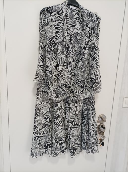 Vrlo lijep komplet modne kuće Goričanka sastavljen od suknje i bluze. Viskozno. Može se nositi i odvojeno, a i kupiti odvojeno. najbolje za veličinu 42/44. Suknja 18 eura, bluza 10 eura. Komplet 25 eura.