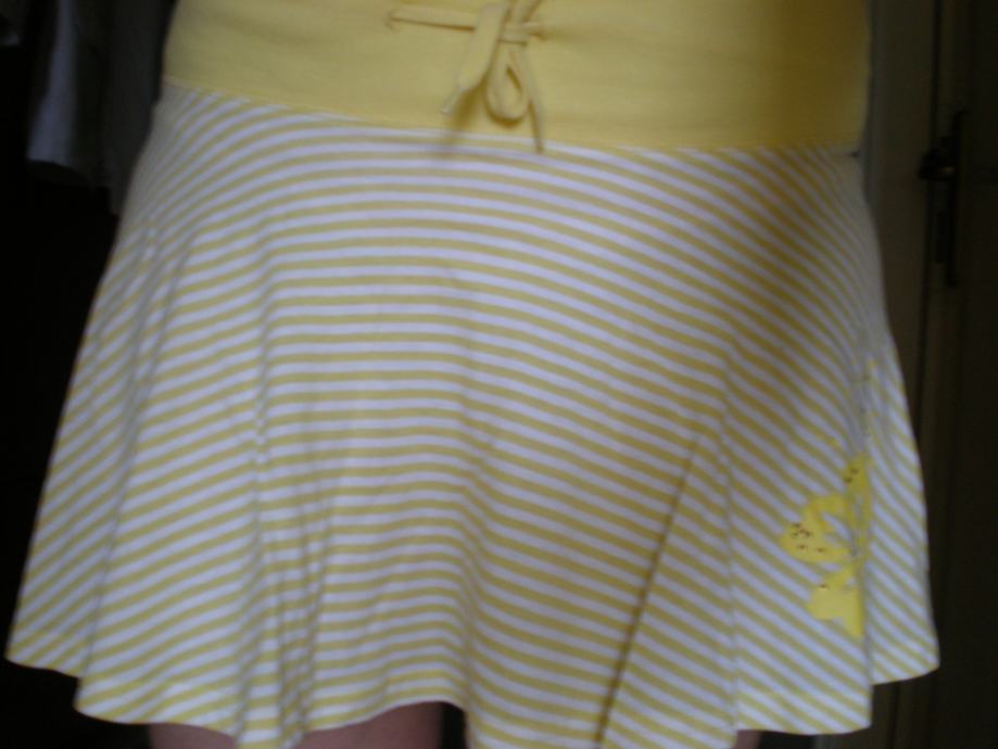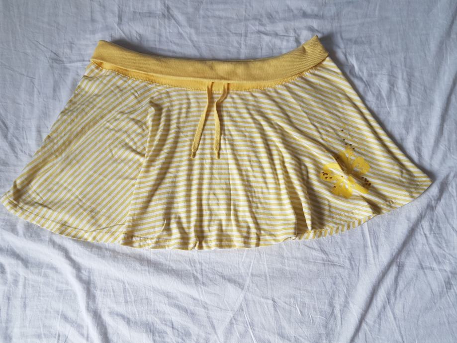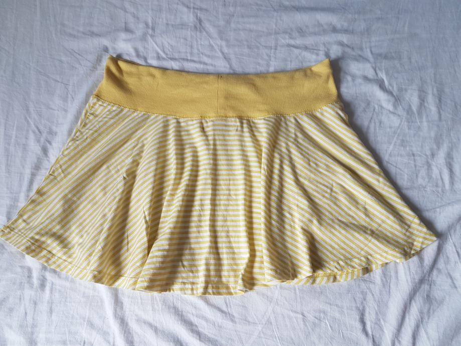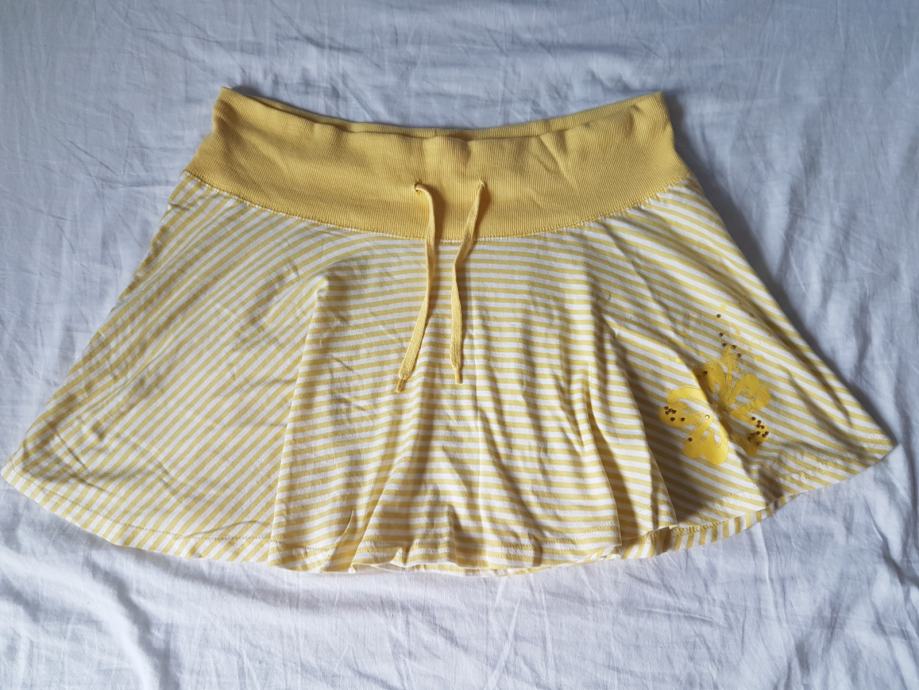 Lagana pamučna lepršava suknja Fishbone na žuto bijele pruge. A kroja, veličina M no dosta je rastezljiva te stane i L (40). Nošena samo par puta, u odličnom stanju. Dužine 35 cm.