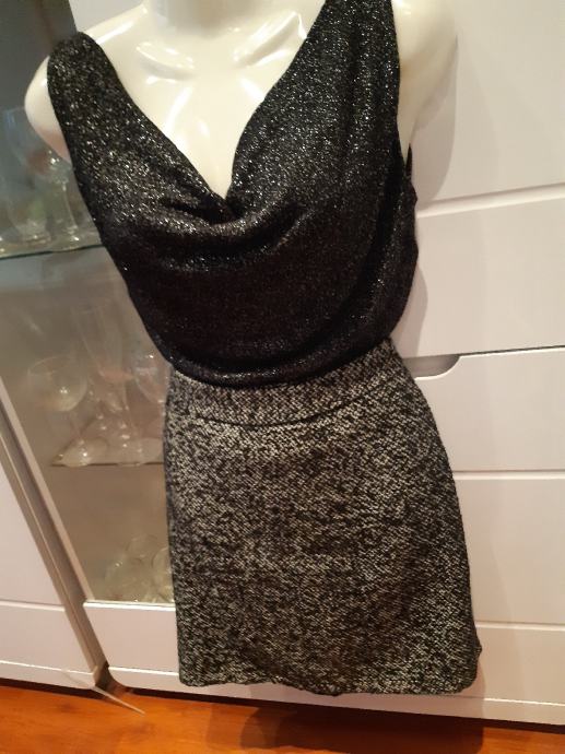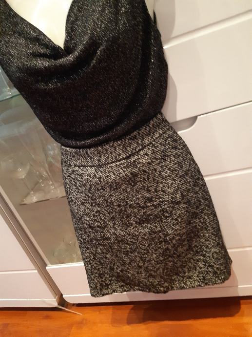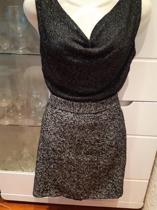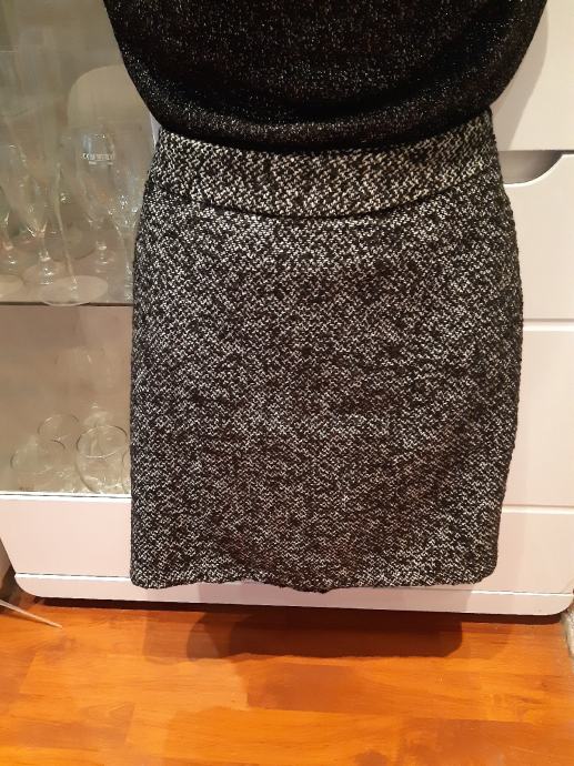JANINA siva kraca podstavljena suknja od buklea, vel. 42. Širina struka, samo prednja strana: 44 cm, bokova: 52 cm, dužina suknje: 48 cm.