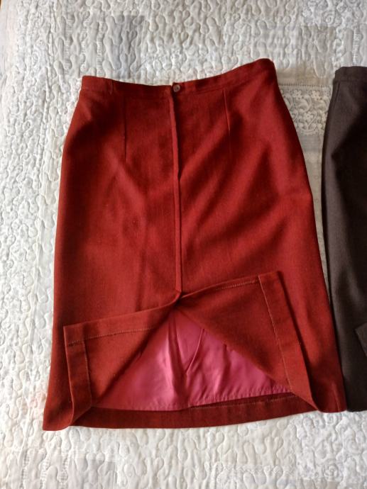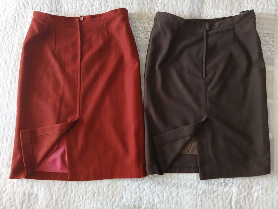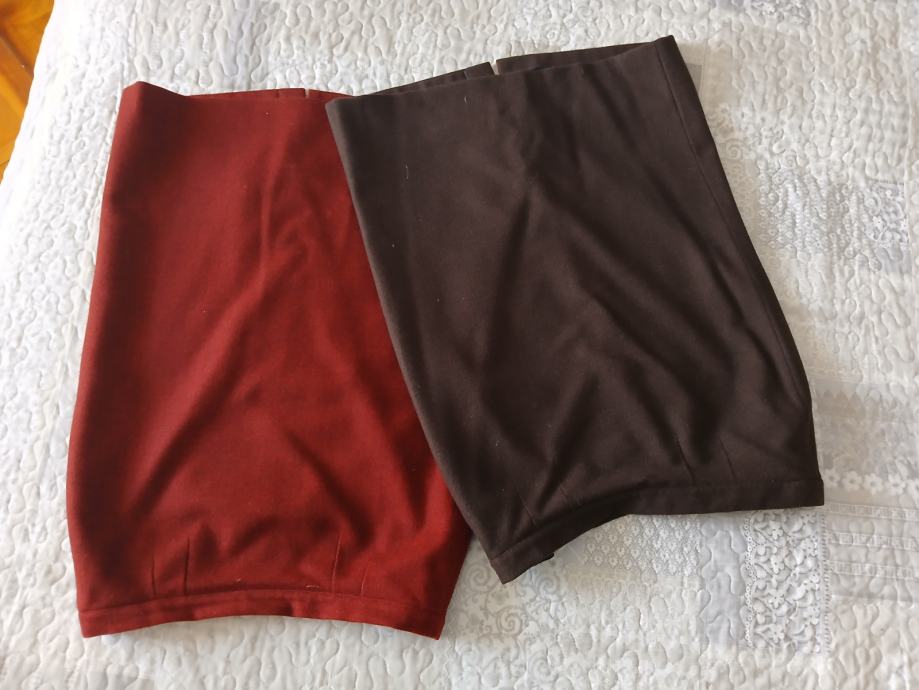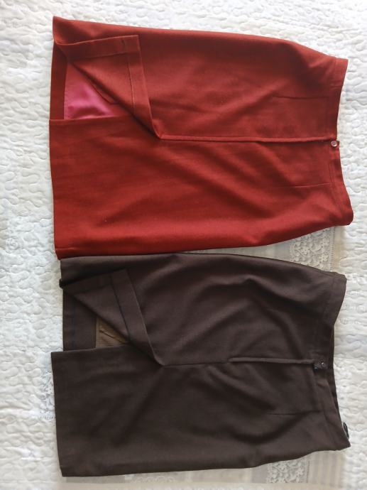 Dvije prekrasne i kvalitetne ( mjesavina vune) pencil suknje veličine XL/42. Jedna je bordo boje ( tamnija nego na slici ) , a druga čokoladno smeđa.