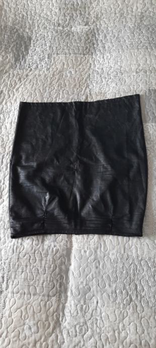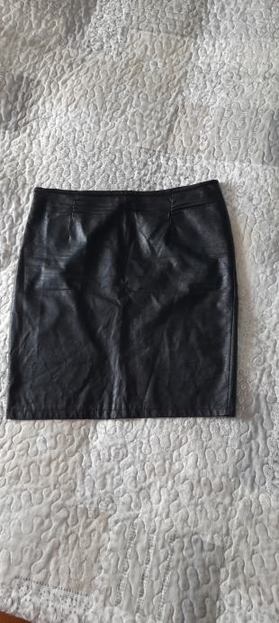 Suknja od eko kože L veličine. U struku 41 cm...u bokovima 49 cm...duljina je 50 cm. Ugodna je za nošenje i malo se rasteže.