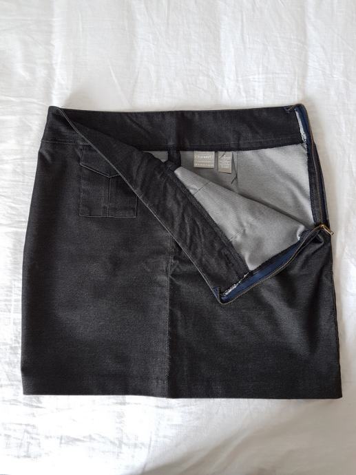 Nova nenošena Old Navy suknja, tamnoplave boje, poput jeansa, materijal je elastičan, tako da se rasteže, uska uz tijelo, lijepo stoji. Mali džepovi dolaze s prednje strane, šlic je sa strane. Veličina M (38). Dimenzije: širina u struku 39cm, širina u bokovima 46 cm, dužina 43 cm.