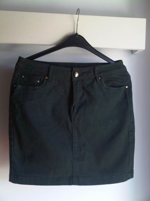 Petrolej zelena traper suknja S/M . Širina u struku 40cm, rastezljiva, pa odgovara za manji M, duljina 45cm. Kao nova, bez tragova nošenja. 2.5 e+pt