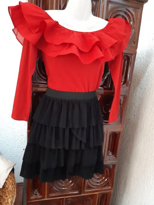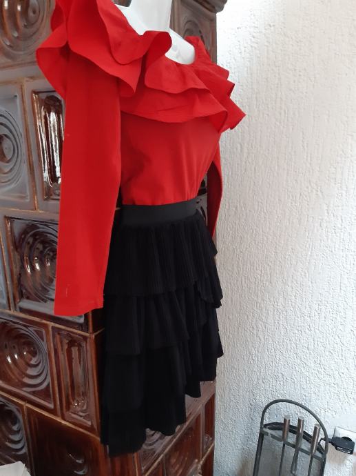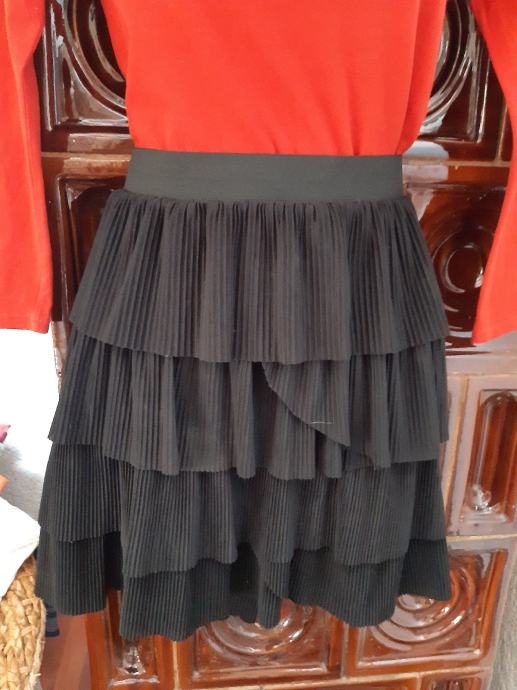Talijanska crna plisirana suknjica s volanima, guma u struku. Sirina struka, prednja strana: 38 cm, dužina: 47 cm. Sastav: poliester.
