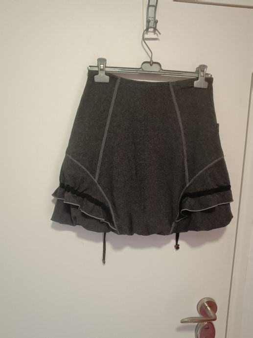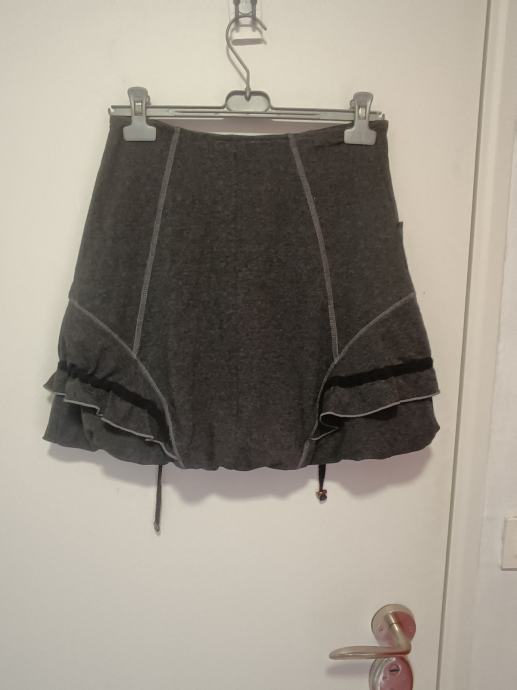 Preslatka siva suknja. Ima brojne dodatke, dva velika džepa i vezica kojom možete sami oblikovati suknju. Mekana i ugodna.