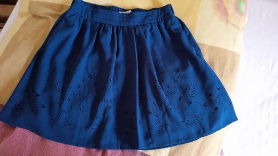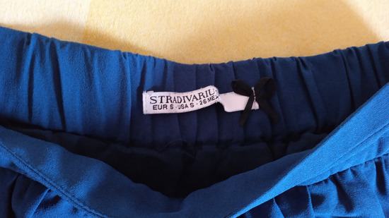 Plava suknja s kosim džepovima, marka Stradivarius, postavljena, veličina 36, vrlo malo nošena.