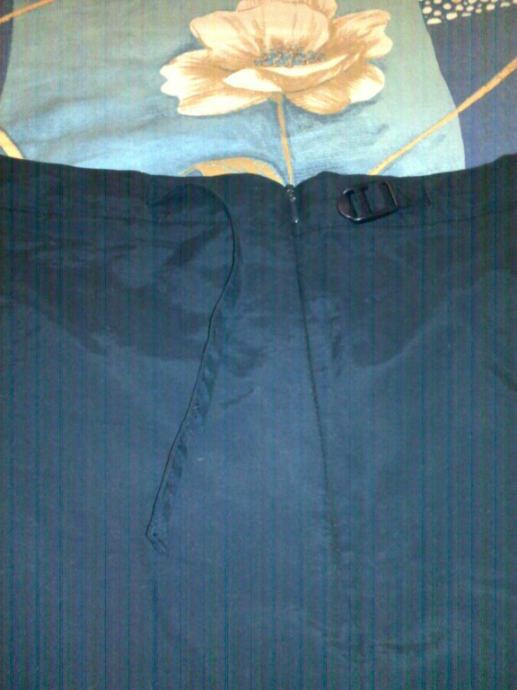 prodajem dugu suknju tamno plavu Sa strane naprijed ima dva džepa i odotraga .Marka as, veličina 40,materijal 70% cotton 30% polyamid.Odotraga ima otvor