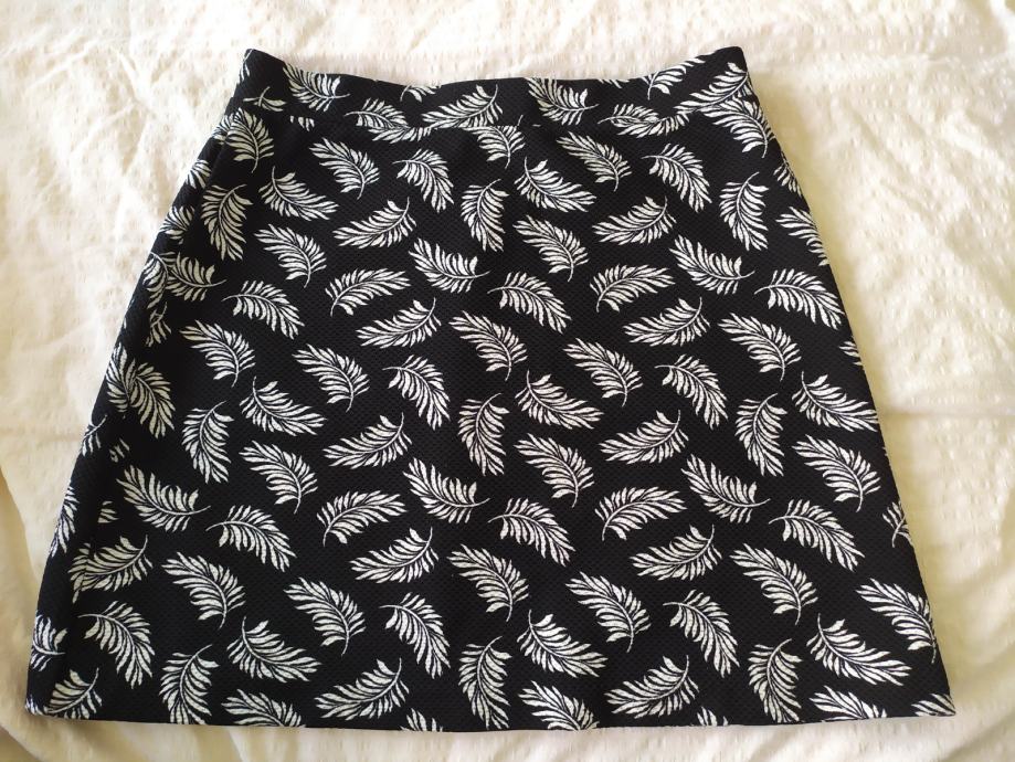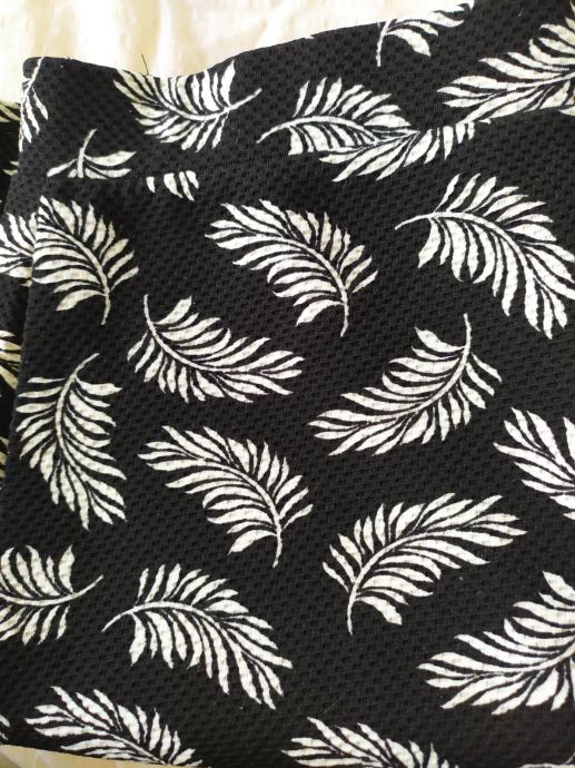 Suknja kao nova u odličnom stanju. Veličina S označena, ali je više M. Rastezljivi materijal, s uzorkom bijelih palmica. A kroj.