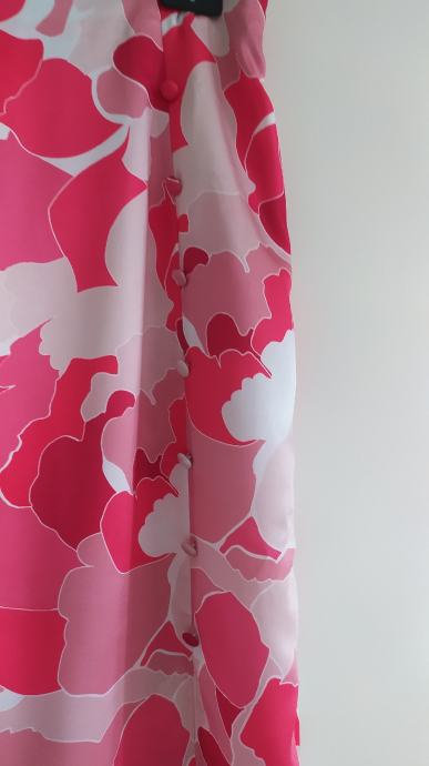dugačka suknja, visoki prorez sa prednje lijeve strane, dužina proreza 34 cm, ukrasni gumbići, kopčanje sa strane na cif, materijal poliester, lagana ljetna suknja, Mohito, dužina 80 cm. Nova.